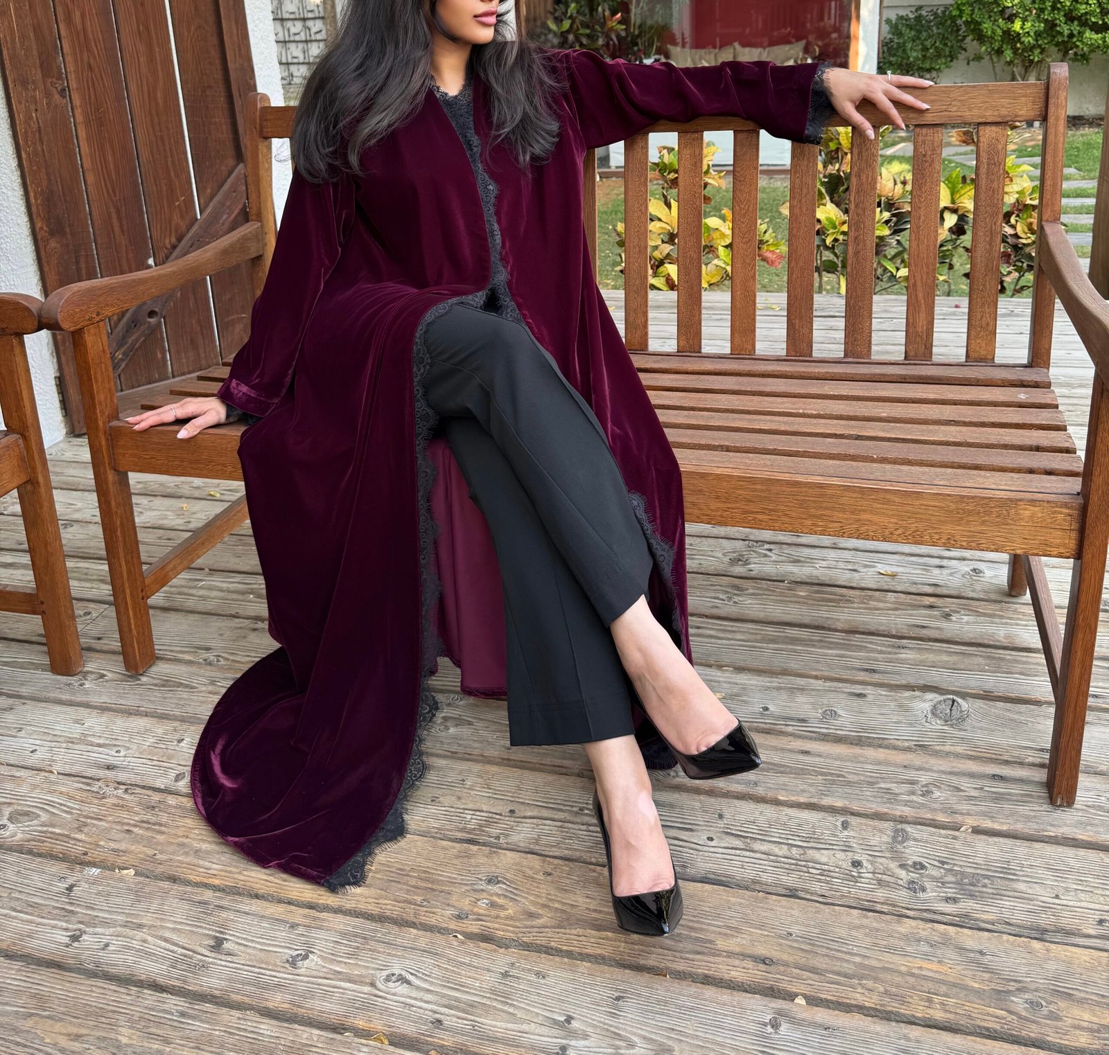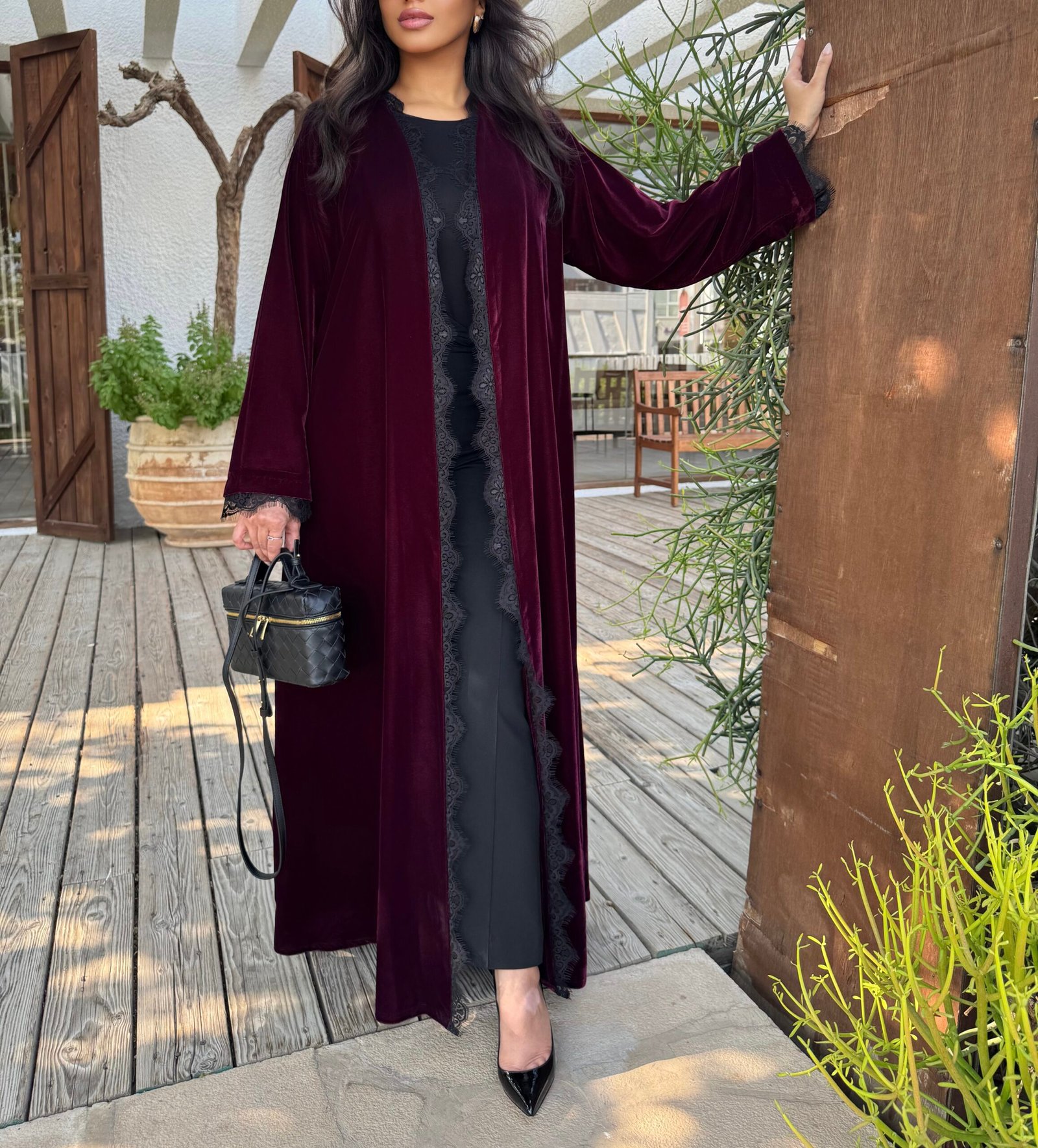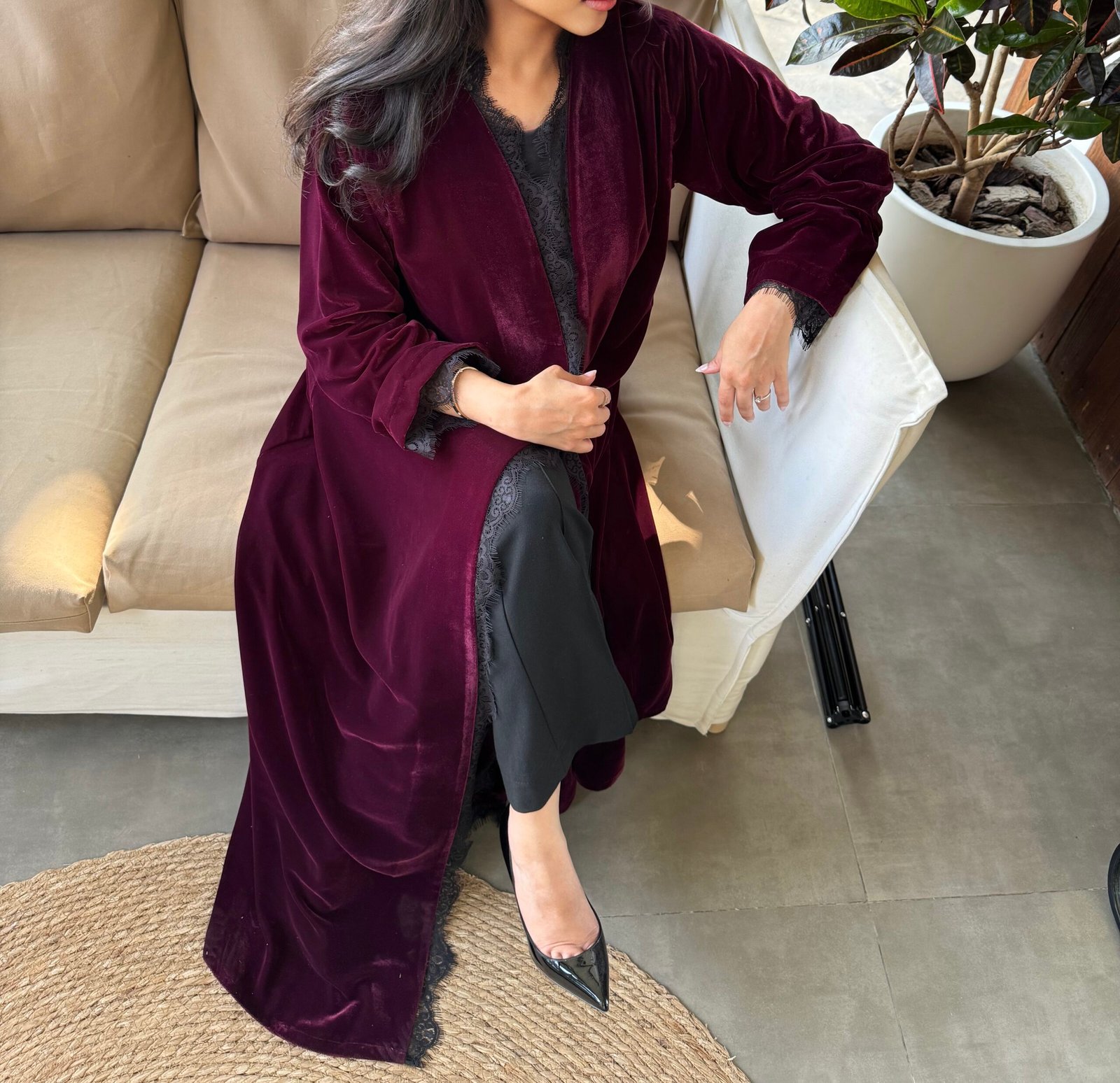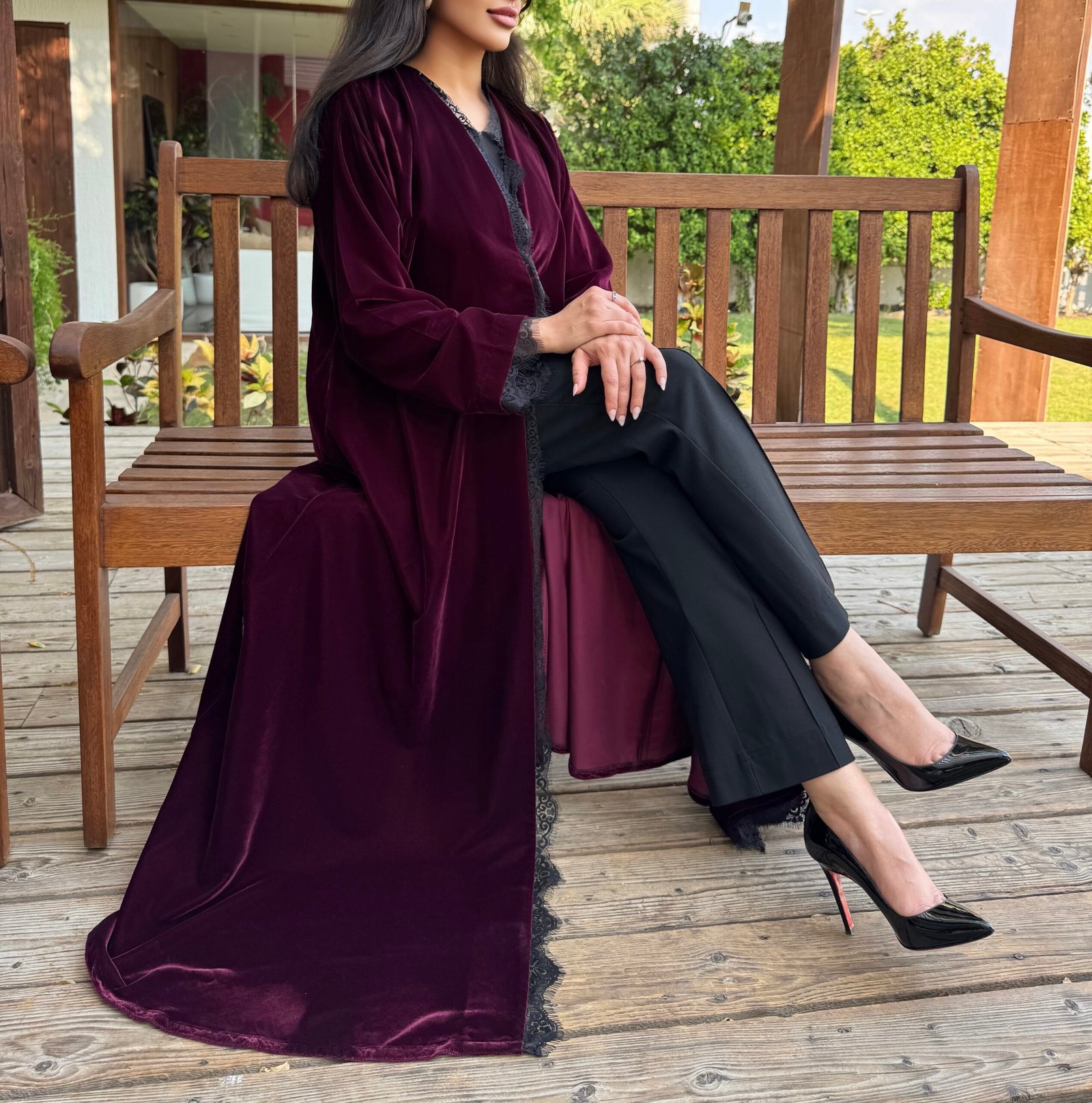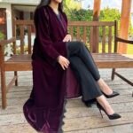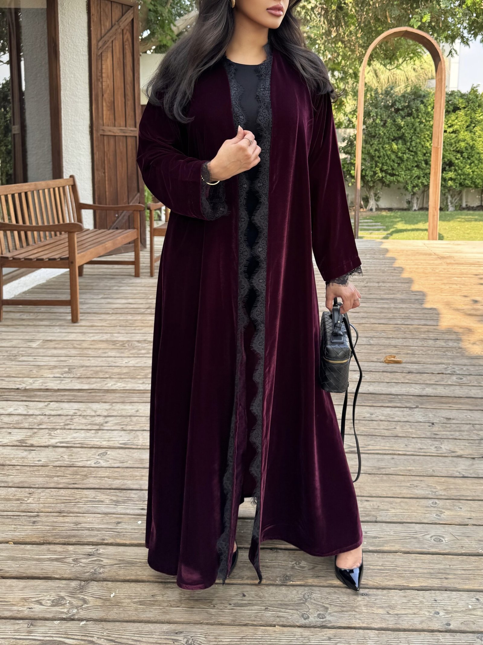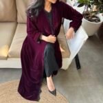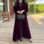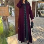 - Flared burgundy velvet abaya