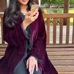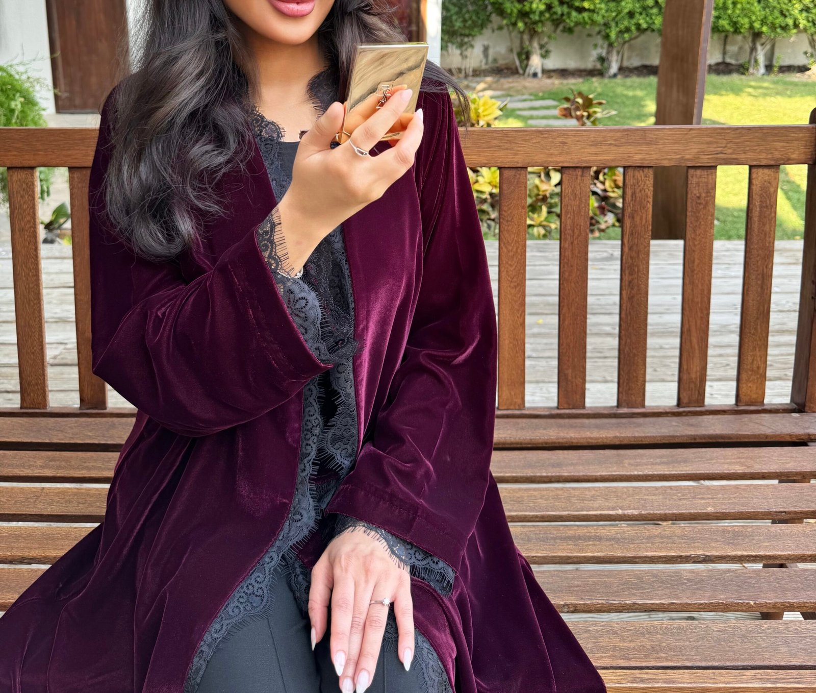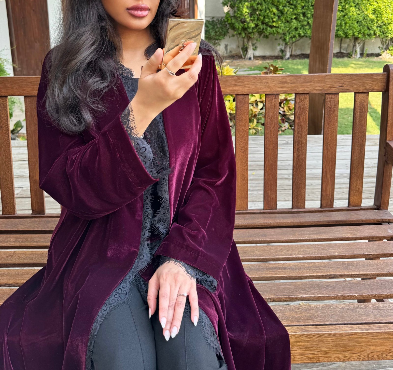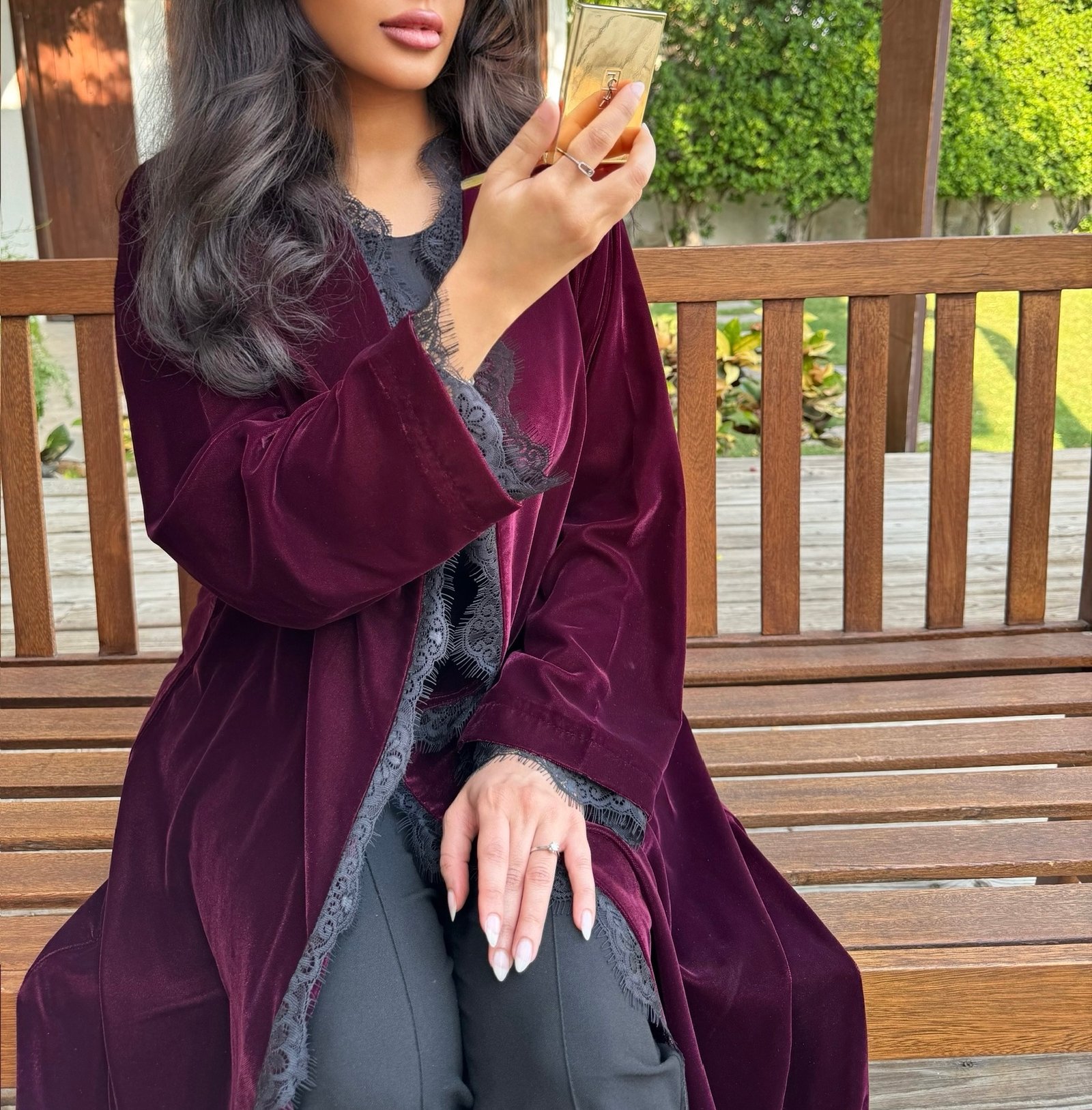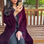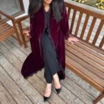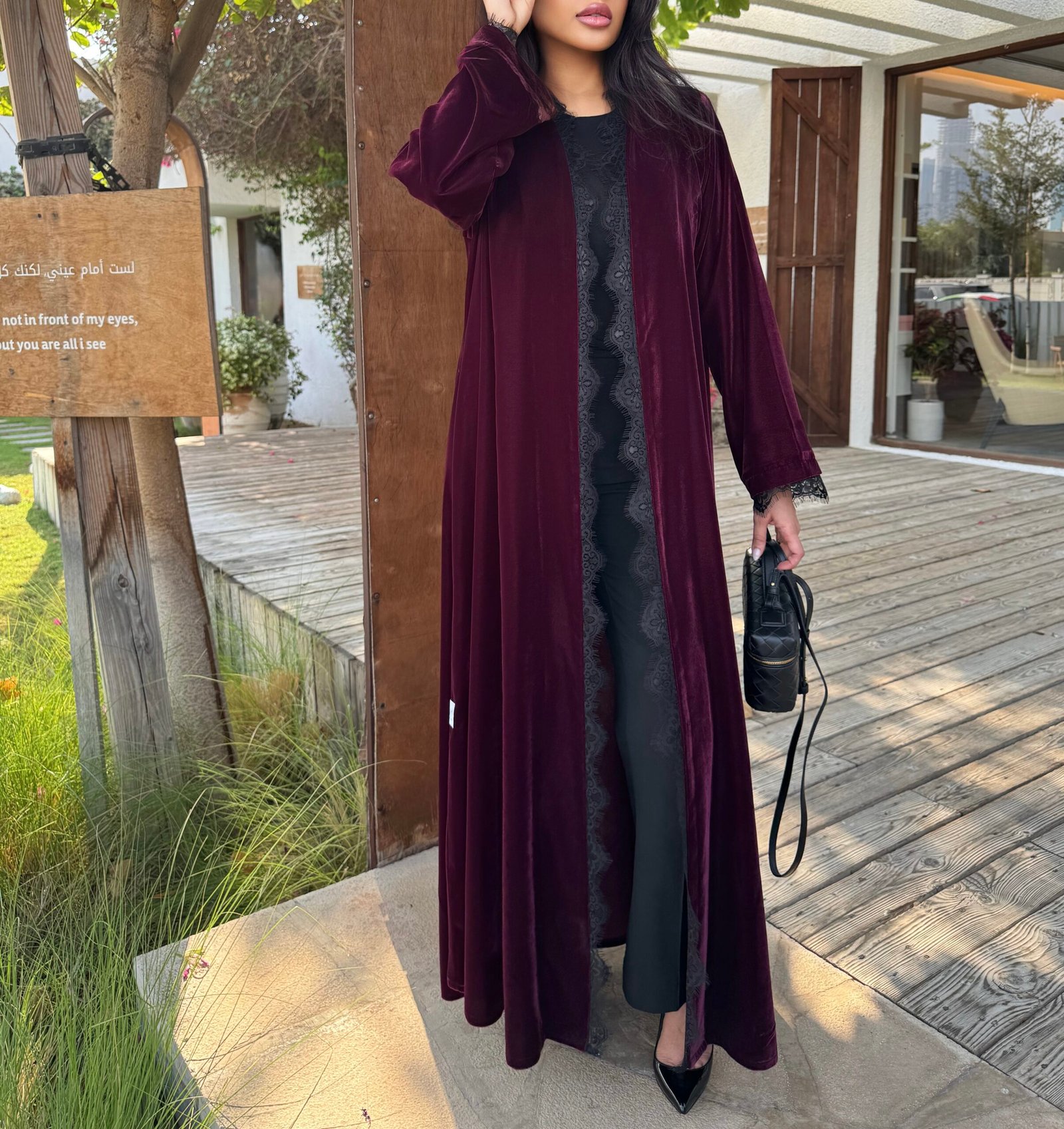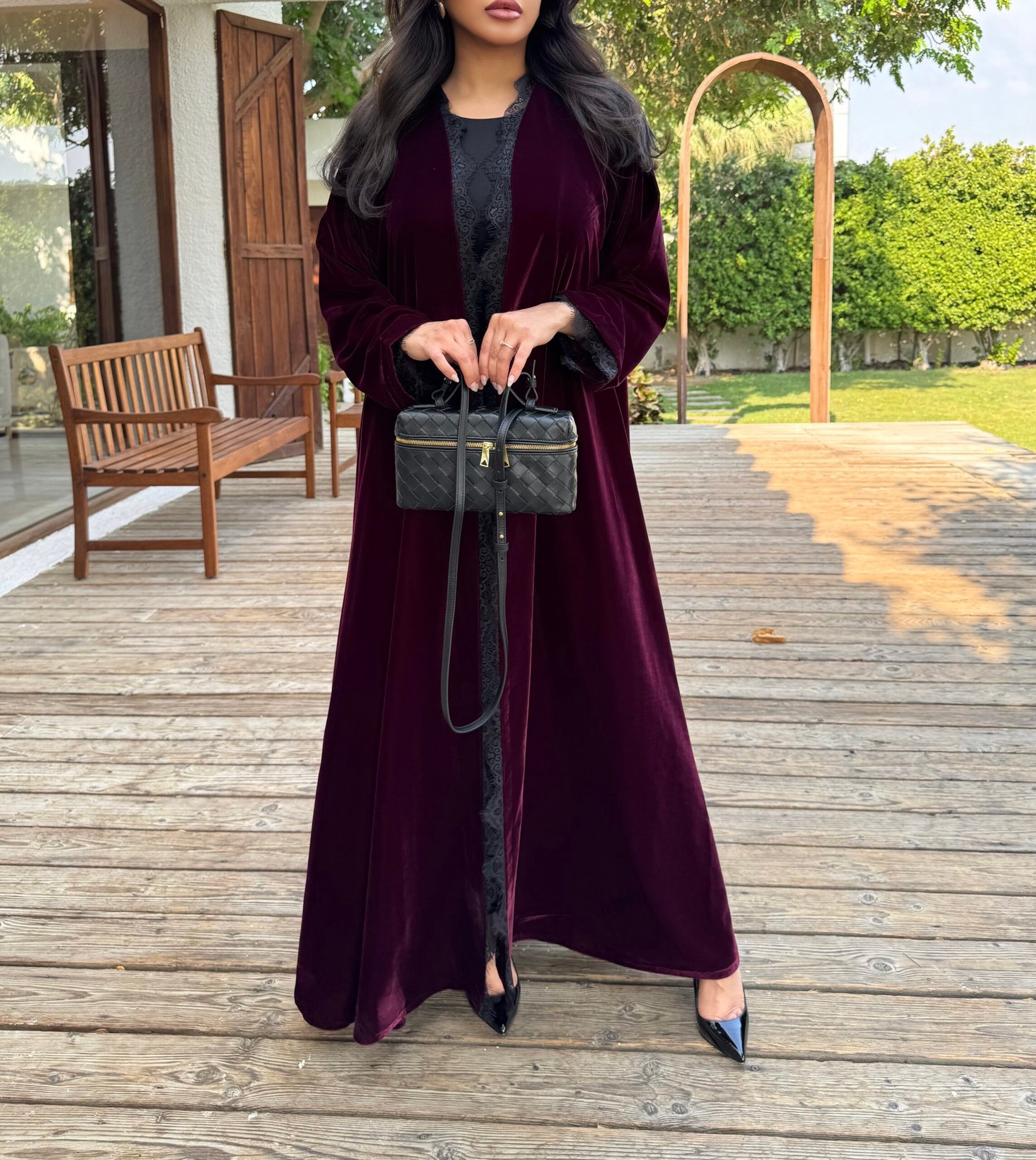 - Flared burgundy velvet abaya